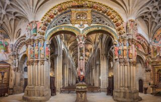 Al llegar a Santiago, recorreremos a pie el casco histórico, conocido como la Améndoa, durante aproximadamente 2 horas. Pasearemos por los contornos de la antigua muralla, explorando la importancia de sus puertas y la riqueza de sus monasterios, hasta llegar a la magnífica Praza do Obradoiro y la imponente fachada de la Catedral de Santiago. Si lo desean, al final del recorrido, podemos dirigirnos a uno de los cafés más emblemáticos y elegantes de la ciudad. Además, les orientaremos para que puedan disfrutar de una visita al Pórtico de la Gloria, una de las mayores joyas arquitectónicas de la Catedral. Una jornada inolvidable llena de historia, cultura y paisajes únicos.