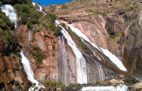 Percorrido: Salimos de Santiago de Compostela hacia la Costa da Morte para visitar increíbles monumentos históricos como el Dolmen de Dombate y el Castro de Borneiro. Si la marea lo permite, hacemos una breve parada en la Playa de los Cristales y continuamos hacia la Fervenza do Ézaro. Después de disfrutarla, nos dirigimos al Cabo Fisterra.
